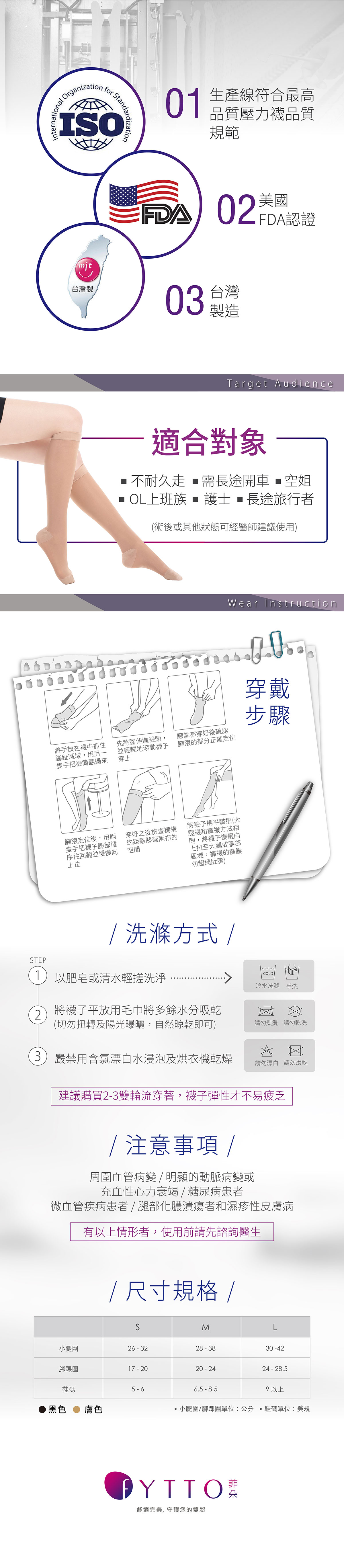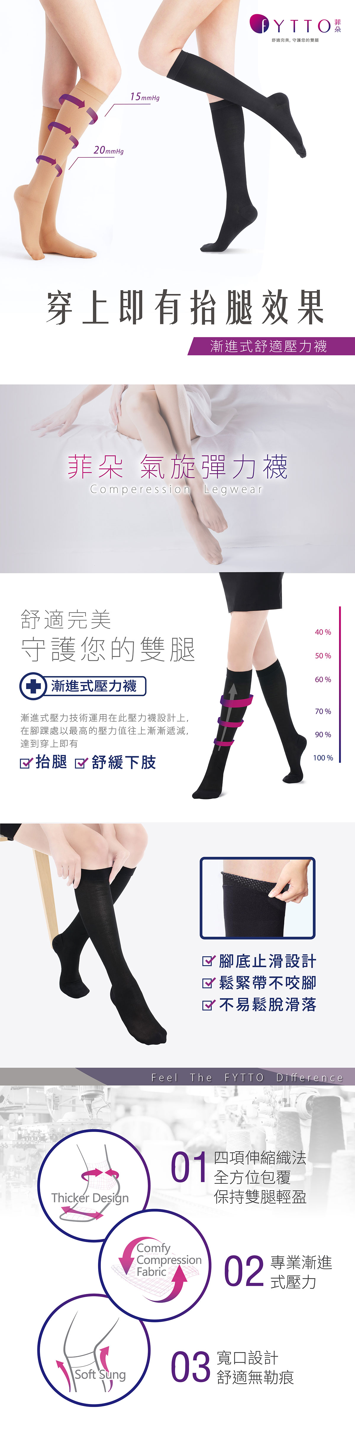 菲朵超薄透氣及膝壓力襪女款1007 (S/M/L) | Fytto