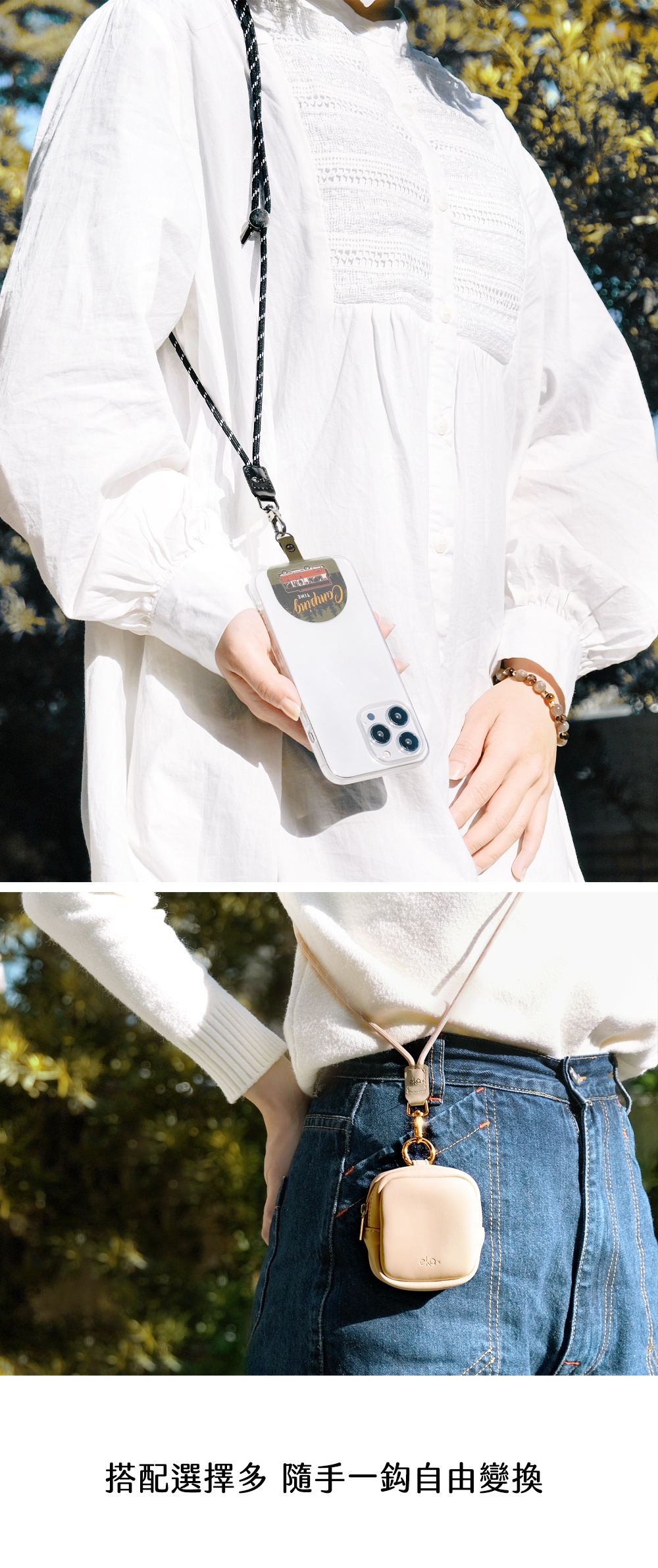 • 可當頸繩或斜背,搭配手機夾片使用更便利