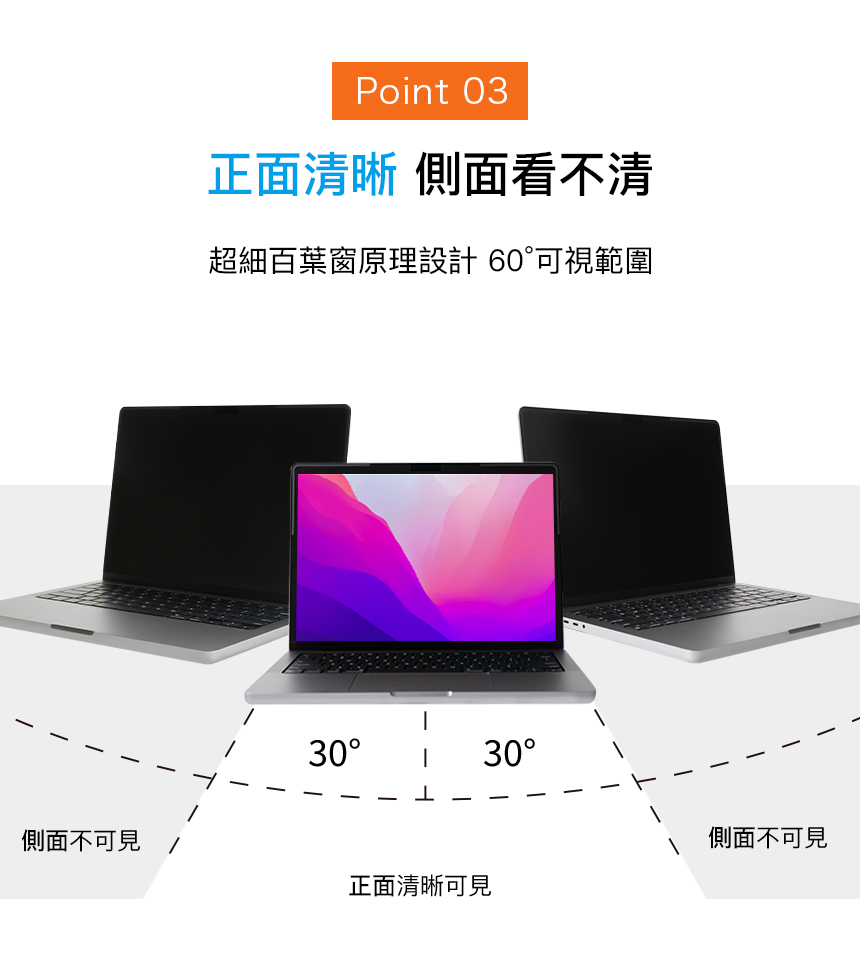 • 正面高清晰度,左右兩側僅能看到黑暗的螢幕。