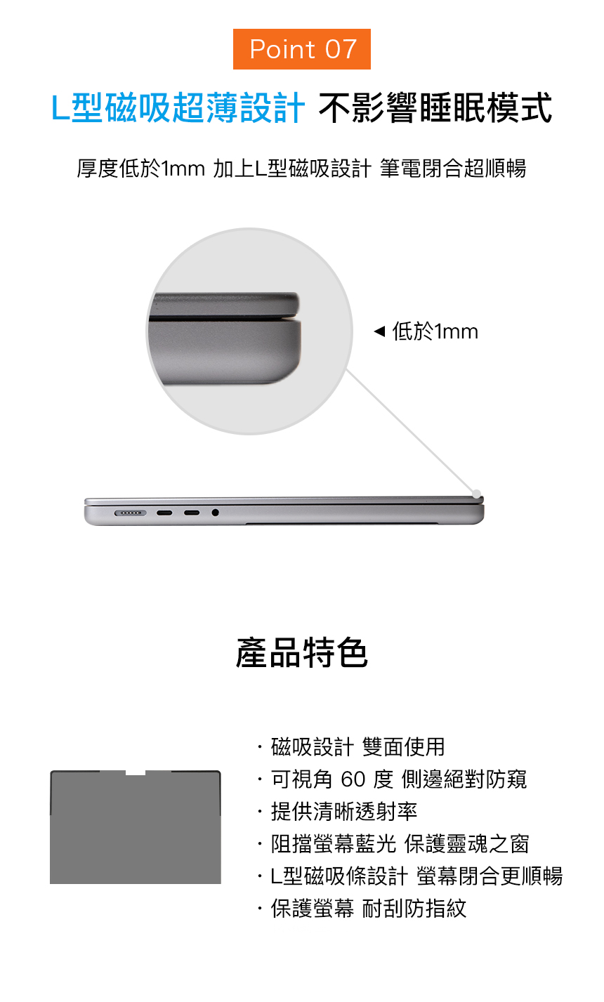 磁吸款 MacBook 螢幕抗藍光防窺片 13.3-15.3"|ergomi