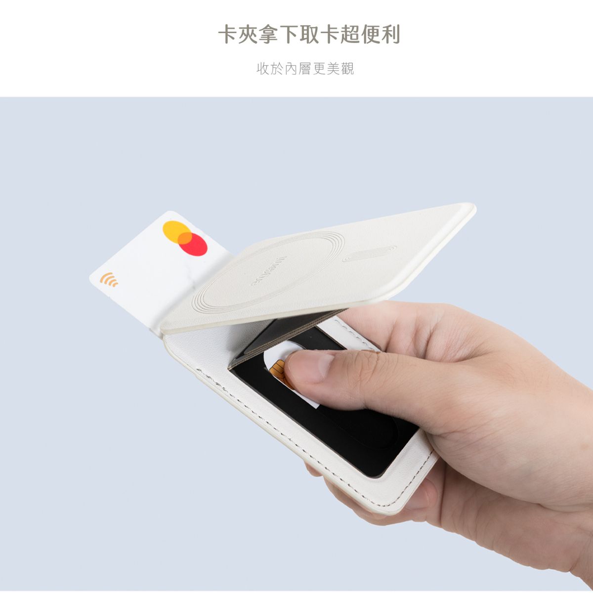 卡片拆除注意事項:請勿垂直拔取,建議向一側推移贈引磁貼 解放更多機型  非磁吸手機殼,或是無MagSafe機種也可以磁吸使用  (需黏貼於手機殼外側)