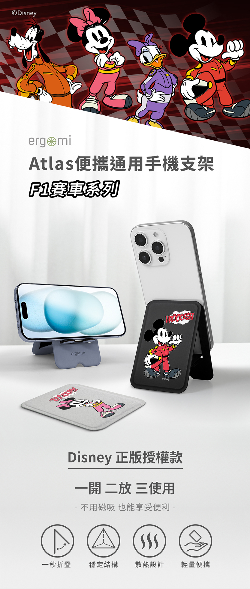 【米奇好朋友】Atlas|便攜通用手機支架_迪士尼xF1賽車_賽道群星-黛西|ergomi