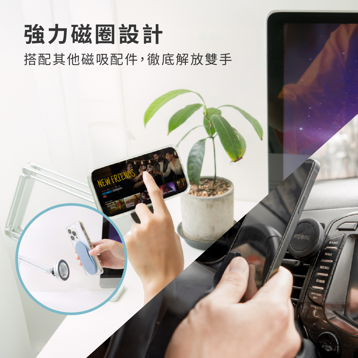 • 史上第一款雙磁圈手機支架,強磁升級超好吸