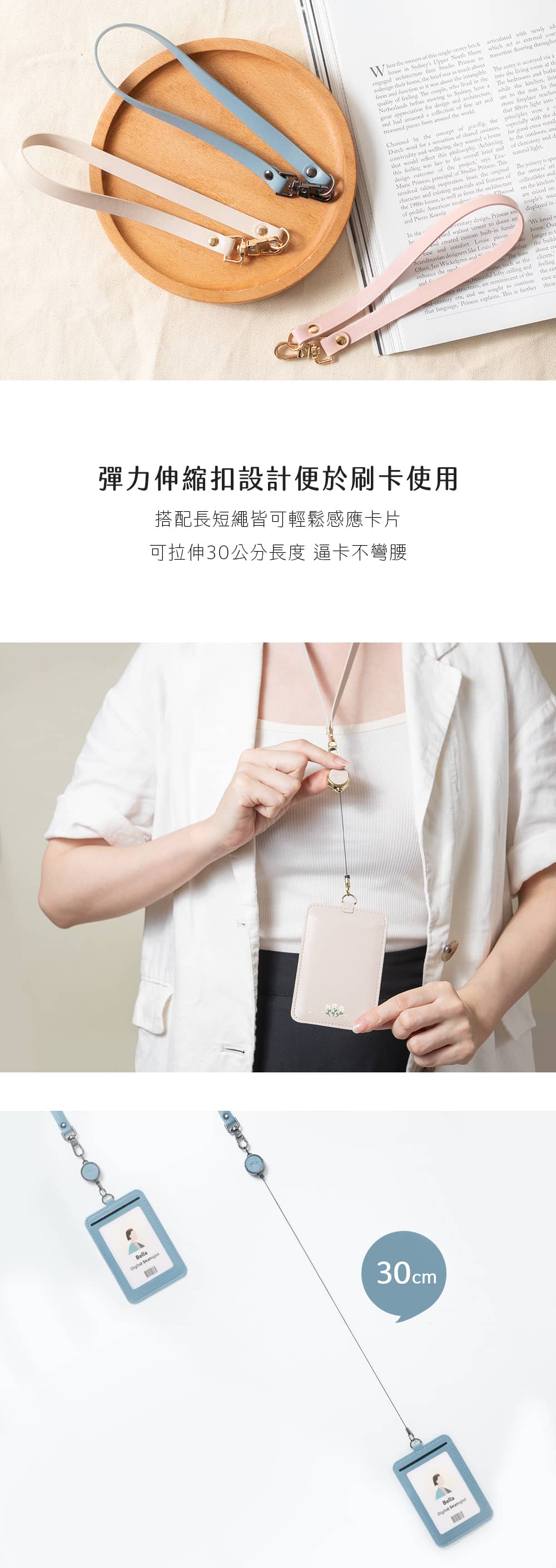 ■ 彈力伸縮扣最長可拉伸30公分,感應卡片不需彎腰
