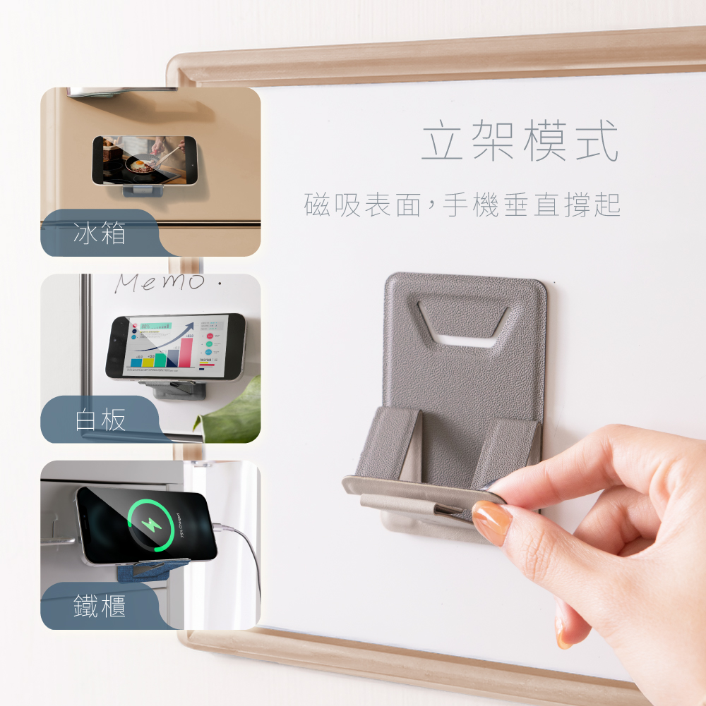 • 無須黏貼 ,隨時平穩挺起手機