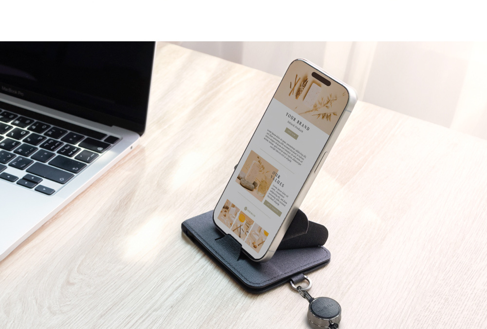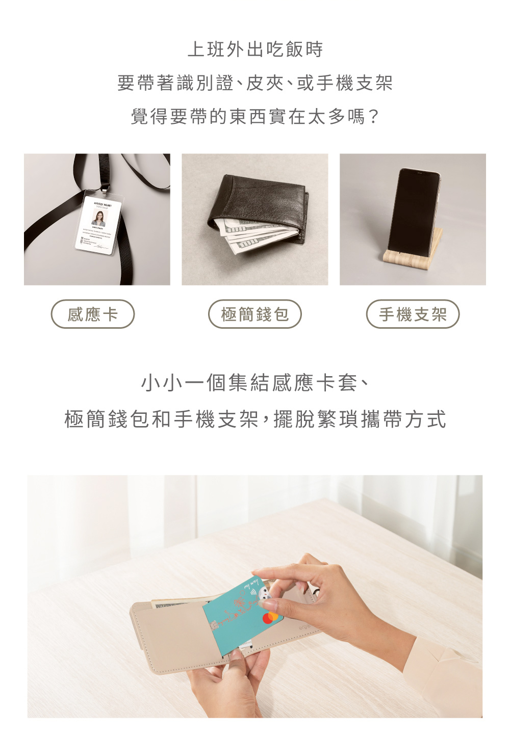 • 史上第一款 感應卡套+微型錢包+手機支架三合一的必備小物!