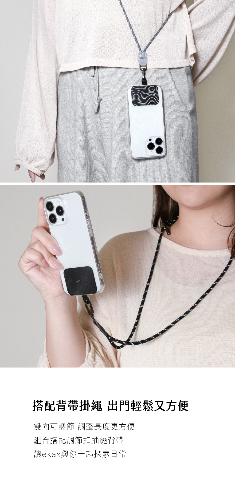 通用夾片Pro組合(通用手機掛繩夾片+調節扣抽繩背帶)|ekax