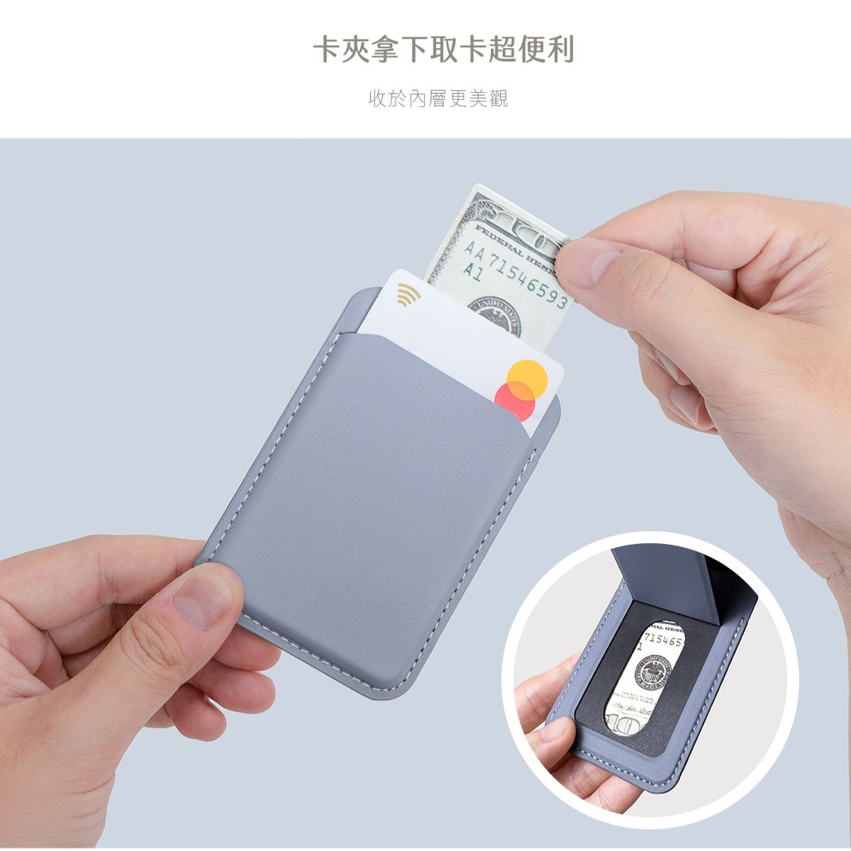 卡槽收納:可收納 1-2 張常用卡,一拿就走。