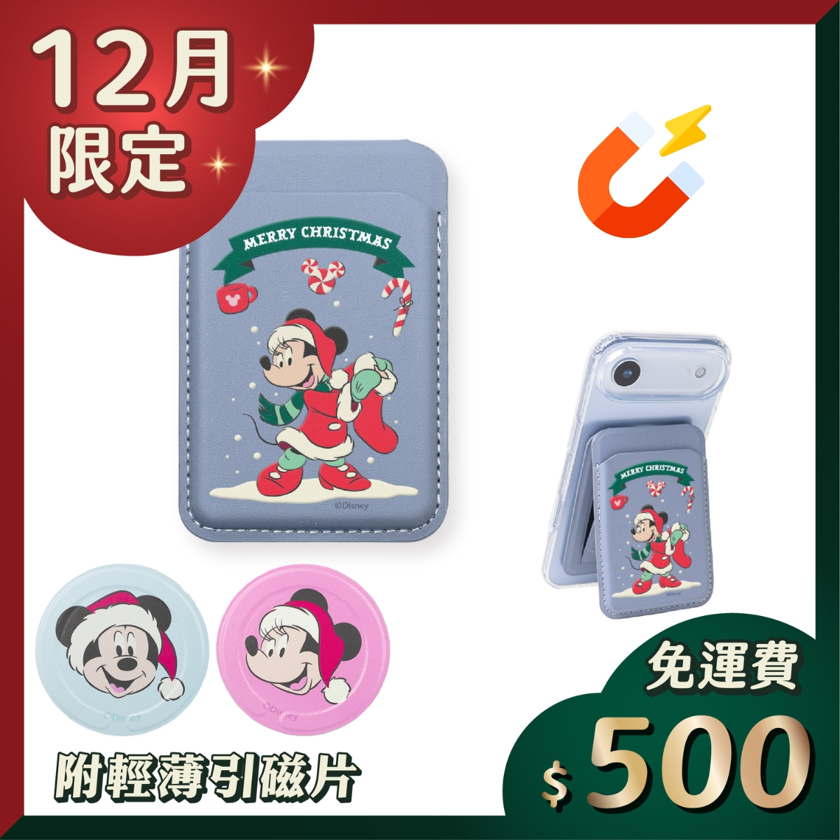 • 迪士尼米妮周邊 聖誕交換禮物 MagSafe 磁吸卡夾,可收納 2 張常用卡片