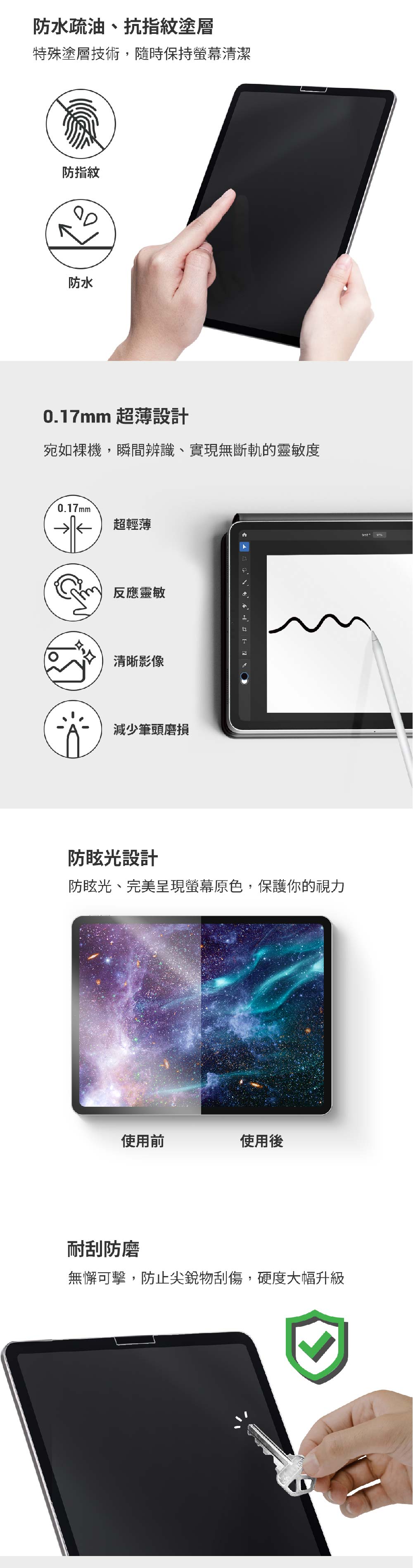 • 耐刮防磨,輕薄卻不失保護膜硬度