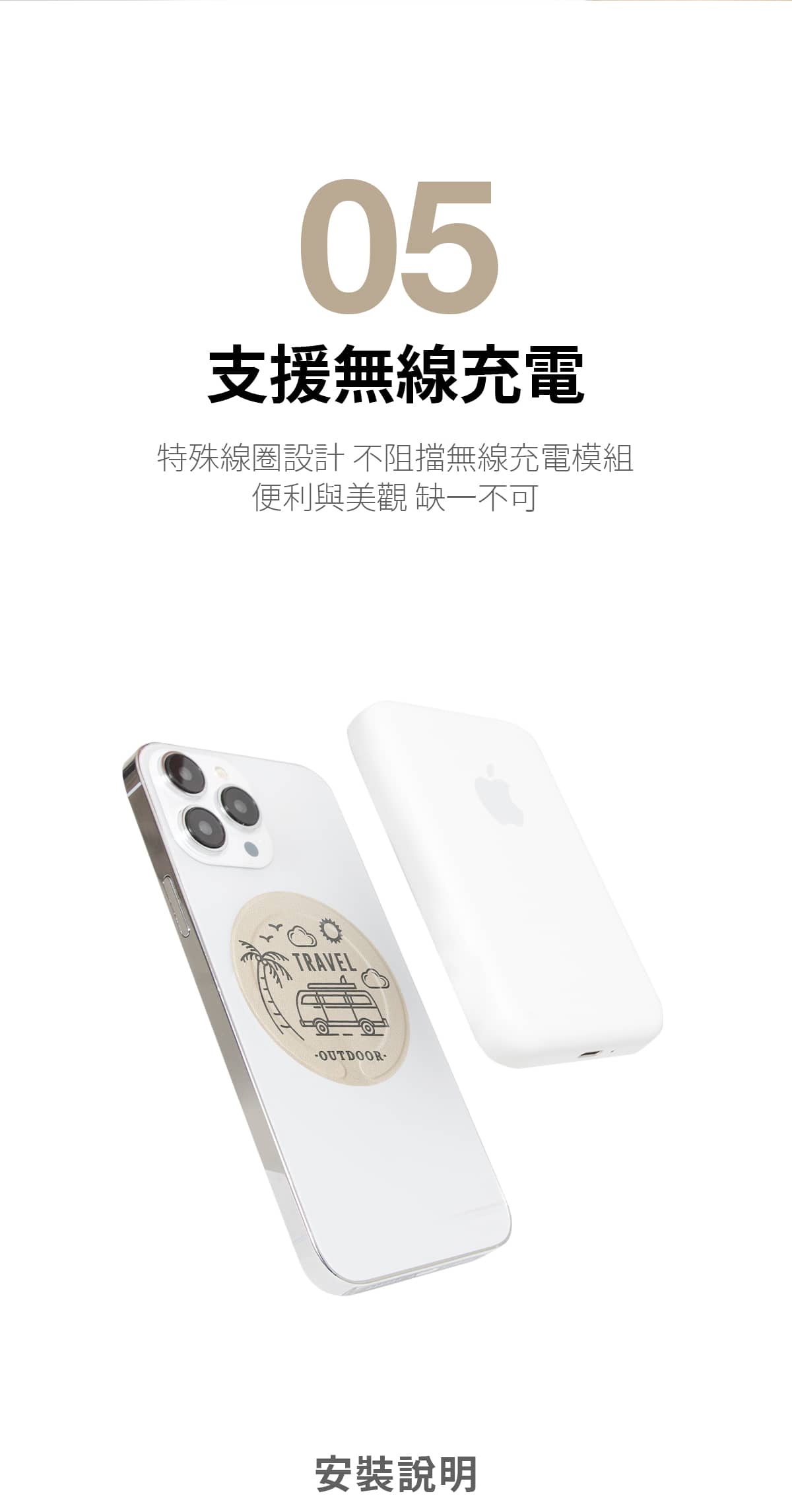 • 特殊線圈設計,不阻擋手機無線充電功能