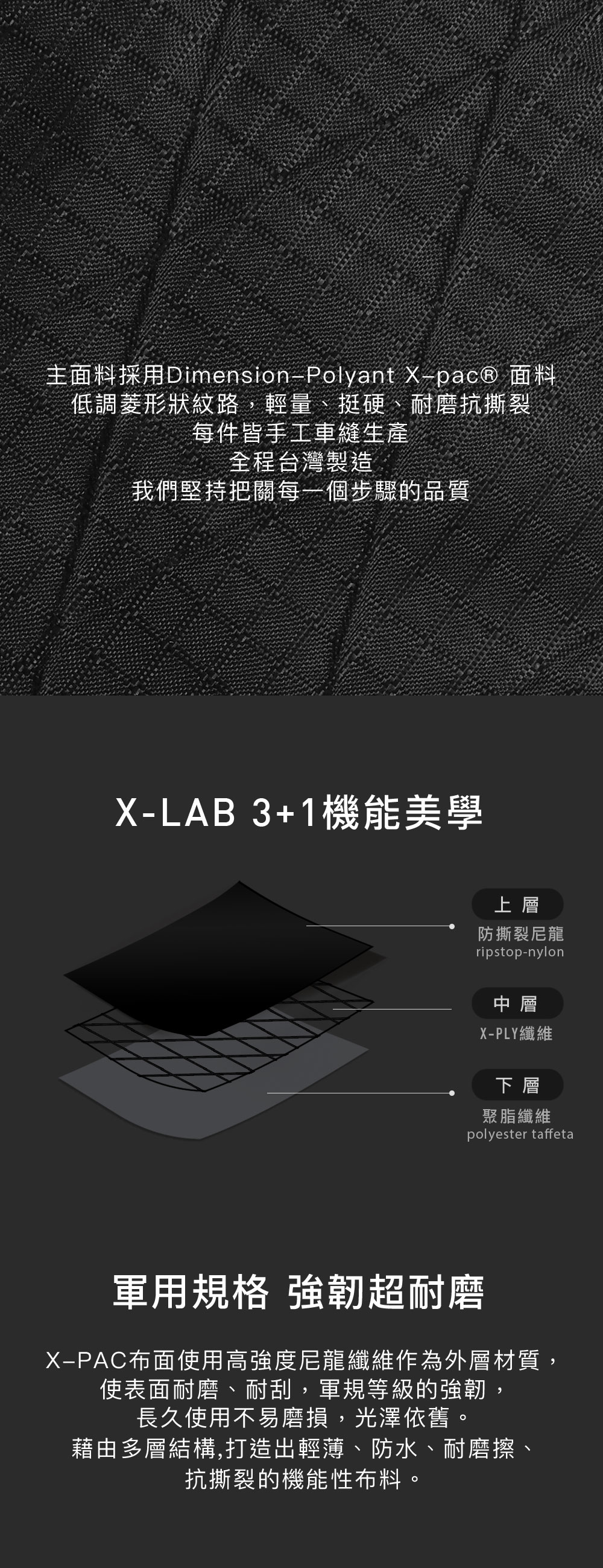 • 軍規X Pac高強度尼龍纖維材質,強韌超耐磨
