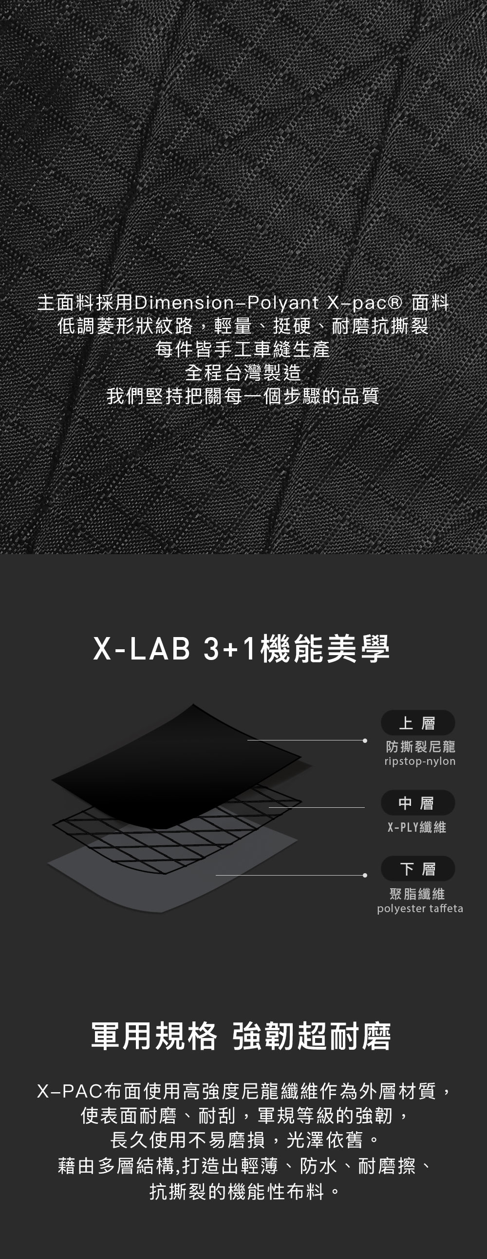 ■軍規X Pac高強度尼龍纖維材質,強韌超耐磨