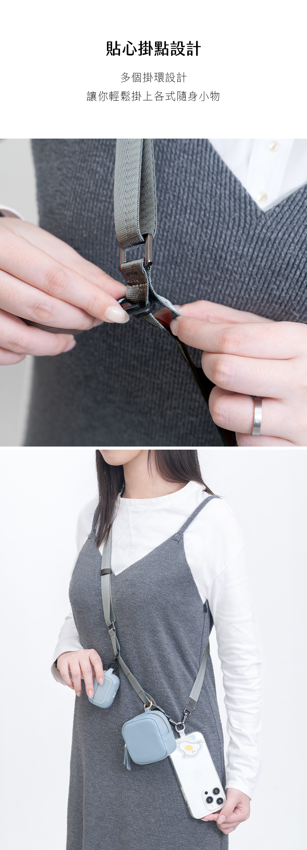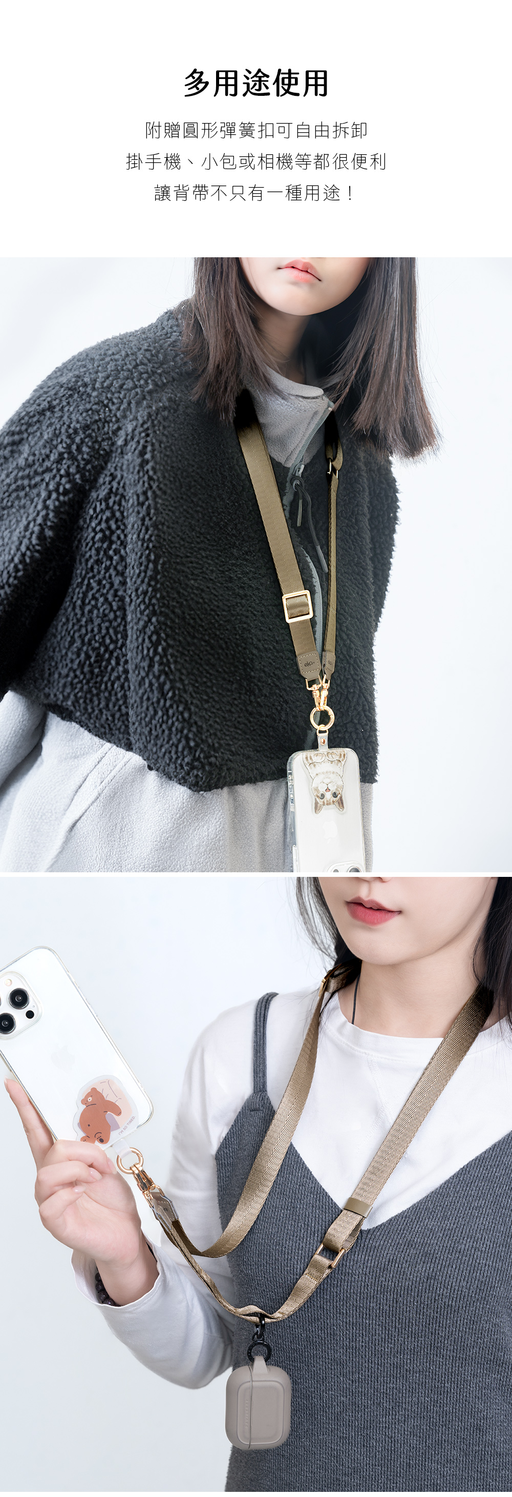 ▸附贈圓形圈扣,單雙鉤自由轉換